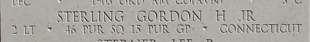Also from FindAGrave.com: Lieutenant Sterling was born in Ilion, New York. In 1927, he and his family moved to Syracuse, NY. He attended John T. Roberts Elementary School and Roosevelt Junior High School before enrolling in Onondaga Valley Academy. After a move to West Hartford, CT, he attended Hall High School there. He attended Trinity College in Hartford, CT from 1937-1939. He entered the military service from Connecticut. He attended and graduated from the Advanced Flying School, Maxwell Field, Montgomery, Alabama, in May 1941.