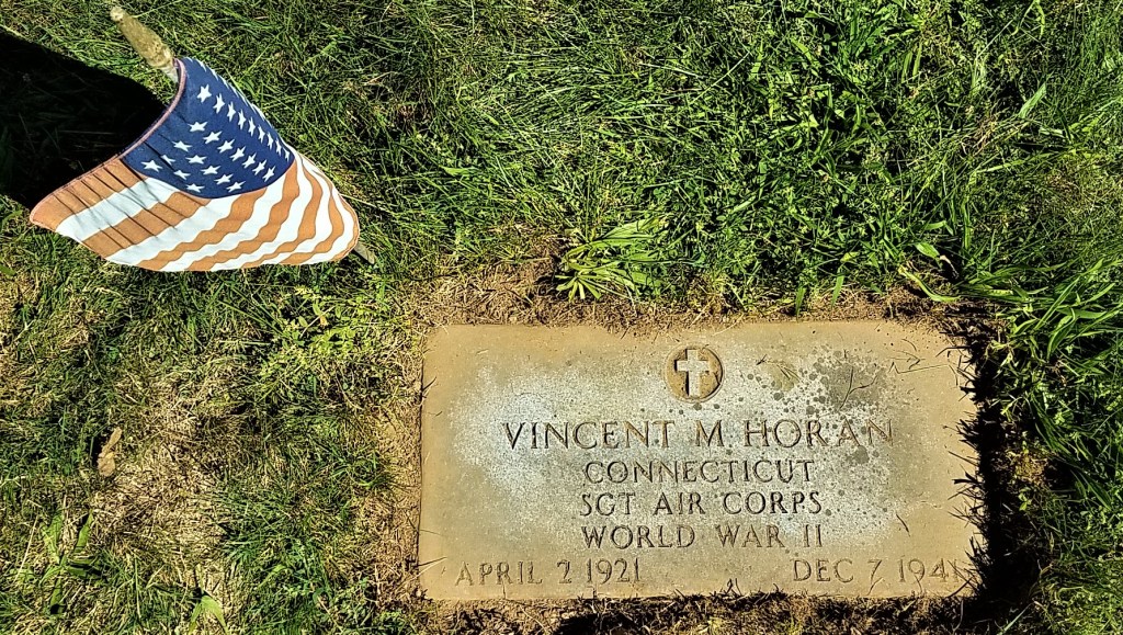Stamford, Dec. 8 – (AP) – Among Connecticut’s first known casualties of the war with Japan apparently was Sergeant Vincent M. Horan of Stamford. His parents, Mr. and Mrs. Timothy Horan, were reported to have received notice tonight that their son, a graduate of Stamford High School who enlisted with the Army in June 1939, was killed in action Sunday at Hickam Field, Honolulu. Sergeant Horan leaves five brothers and sisters besides his parents.