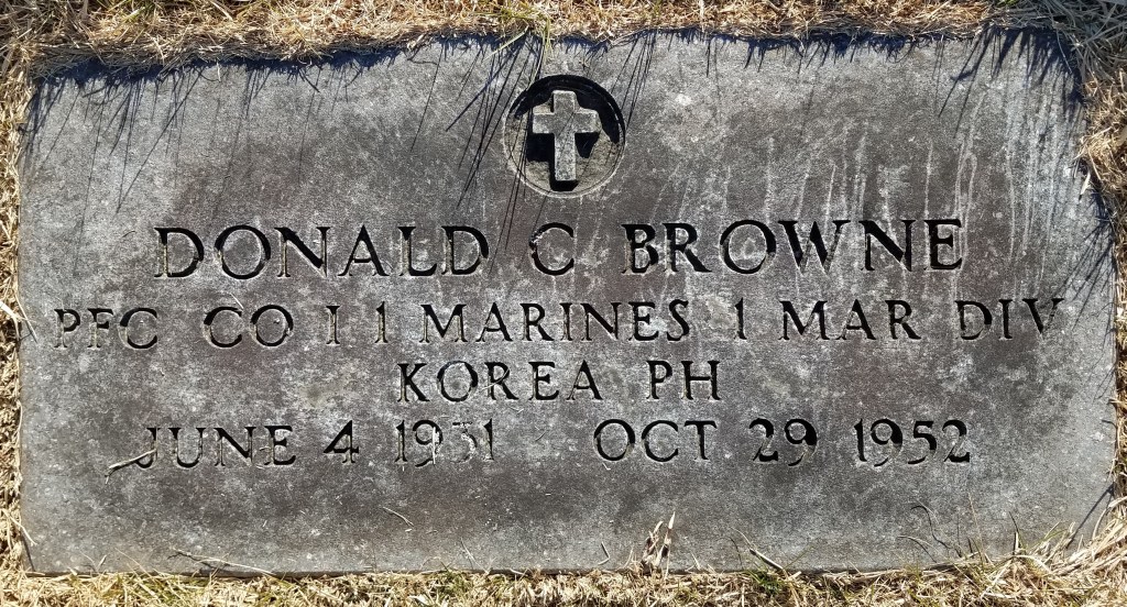 One thought on “PRIVATE FIRST CLASS DONALD CARROLL BROWNE; U.S. MARINE CORPS”