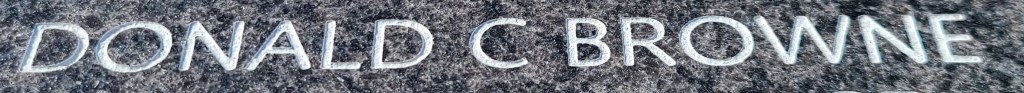 FAMILY: Born to Walter A. (1908-1977) and Ruth C. Wilson Browne (1907-1976). Donald was their only child. One half-brother from his father’s 2nd marriage, Edward T. (1937-).
