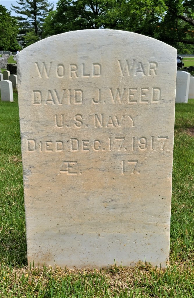 The funeral of David J. Weed, a local sailor who died at the Newport Naval Training Station, will be held tomorrow afternoon, at 3:30 o’clock from the late home, 101 Cedar Street. Reverend George M. Teeple, pastor of the Advent Christian Church, will officiate and interment will be in Riverside Cemetery. Four members of the Norwalk Home Guards will act as pallbearers.