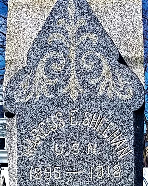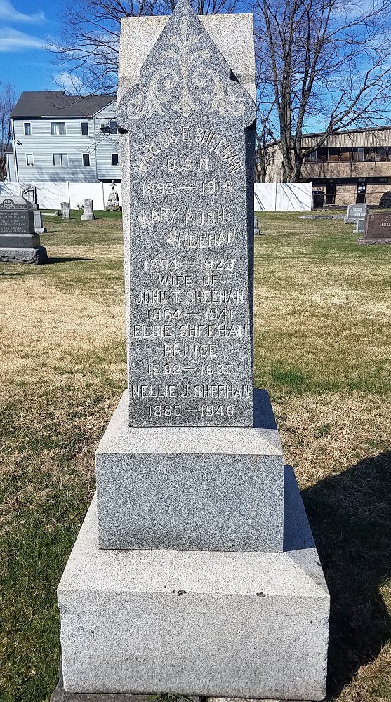 Seaman Sheehan is buried in St. Mary’s Cemetery, 15 Broad Street, Norwalk, Connecticut; West Section. Photos by webmaster.
