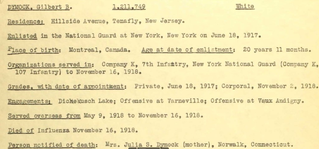 LOCAL ADDRESS: Lived in Tenafly, NJ, when he entered service; mother, Julia Dymock, lived in South Norwalk