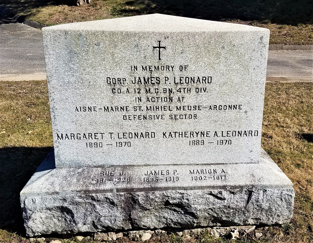 Corporal Leonard is buried in St. Mary’s Cemetery, 15 Broad Street, Norwalk, Connecticut; Section E. Photo by webmaster