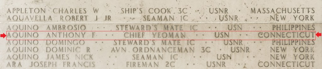 One thought on “CHIEF YEOMAN ANTHONY FRANK AQUINO, U.S. NAVY”