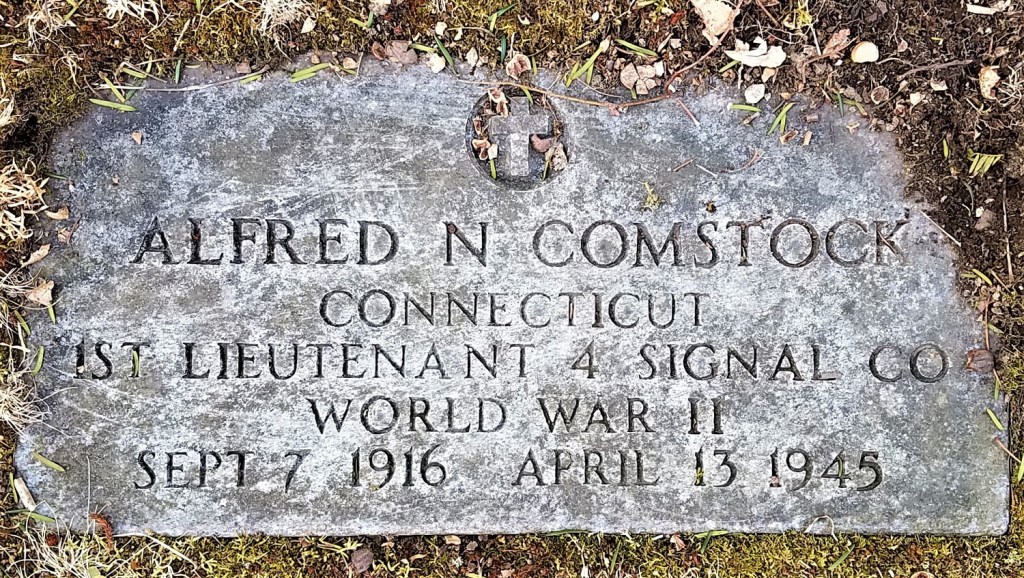 First Lieutenant Alfred N. Comstock, son of Mr. and Mrs. William I. Comstock of 8 Warren Street, Norwalk, and brother of Howard I. Comstock of Bridgeport, who was killed in action in Germany on April 13, was a victim, with two men under his command, of the explosion of a land mine, according to an official report received by his parents today. A memorial service for Lieutenant Comstock, to which friends are invited, will be held in the Norwalk Methodist Church, West Avenue, Norwalk, Sunday afternoon at 4 o’clock. The service will be of charge of the Reverend Floyd George, pastor of the church, and former comrades of Lieutenant Comstock will be among those present. A letter to Lieutenant Comstock’s mother from the commanding officer of the Fourth Signal Company attached to the Fourth Infantry Division, Seventh Army, of which the Norwalk man was an officer, said that the incident which resulted in Lieutenant Comstock’s death occurred about 4 in the afternoon near Aub, Germany, which is 25 miles south of Wurzburg. He was in command of a part reconnoitering after the capture of the village, and the jeep in which he and the men under his command were riding struck a mine and was blown up, killing Lieutenant Comstock instantly and causing fatal wounds to two of the men. Several others were wounded.