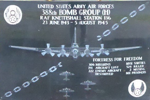 Memorialized on a stone for the 388th Bomb Group at the junction between Fen Street and The Street Fen Street District, St. Edmundsbury, Coney Weston, Suffolk County, England. Link on Google Maps: https://goo.gl/maps/UHwWAp1hakFK6DvXA
