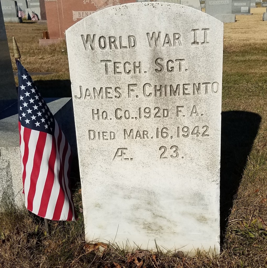 Sergeant Chimento is buried in a family plot at St. John’s Cemetery, 223 Richards Avenue, Norwalk, Connecticut; Section A1, Grave 246. Photo by webmaster.