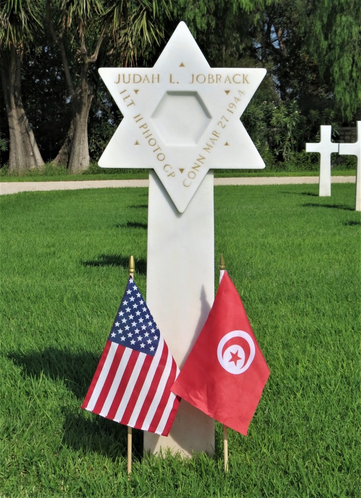 Buried in North Africa American Cemetery, 553 Rue Roosevelt; 2016 Carthage, Tunisia; Plot I Row 16 Grave 1. Photo provided by Atef Gadrib, Cemetery Associate, North Africa American Cemetery.