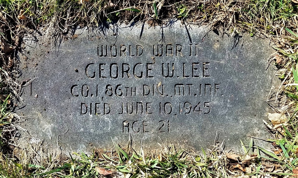 Word has been received from the War Dept. by Mr. and Mrs. Robert Lee of Brattleboro, Vermont, formerly of this city, that their son, PFC George W. Lee, died on June 10 from wounds received on the Italian battlefront. PFC Lee was attached to the 86th Mountain Infantry. He was inducted into the Army from Norwalk on Jan. 4, 1943. He received his training at Camp Hale, Colorado, Front Royal, Virginia, and Camp Swift, Texas. He is survived by his wife, Mrs. George Lee, and son George Jr. of Lake Placid, N.Y. and four brothers, Henry, Daniel, Theodore, and Albert Lee of Brattleboro, VT, and two sisters, Mrs. Richard Austin of Brattleboro, VT, and Mrs. Arnold DePietro of 49 Plattsville Avenue, Norwalk.