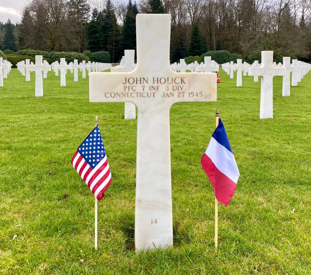 PFC Holick is buried in Epinal American Cemetery, 385 Rue de la Rondenolle, 88000 Dinozé, France; Plot A, Row 24, Grave 14.