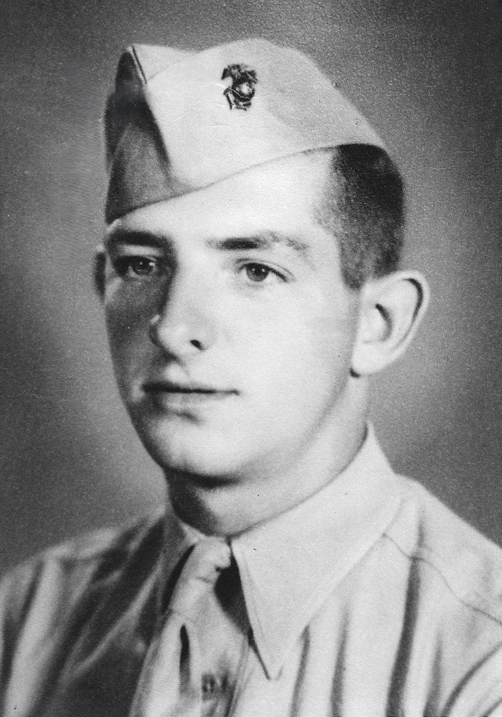 CIRCUMSTANCES: Boot camp in Parris Island, South Carolina, in 1943. Assigned to the Marine Barracks, Naval Air Station in Norfolk, Virginia in late 1943 and early 1944. Assigned to the 45th Replacement Draft, San Diego Area in July 1944 and then the 4th Marine Division, 24th Marines, 1st Battalion. Wounded on March 8, 1945, evacuated, and died of those wounds on March 13, 1945.