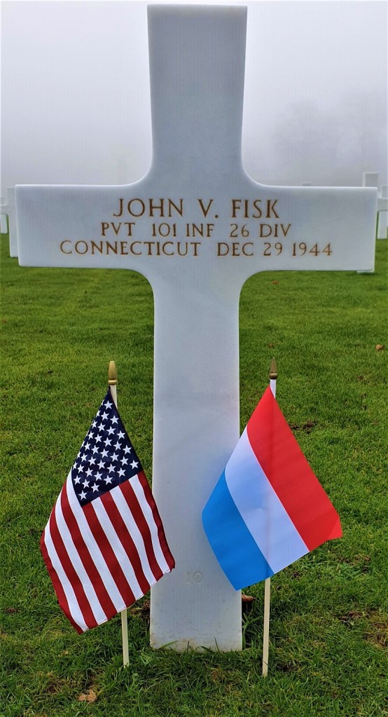 Private Fisk is buried in Luxembourg American Cemetery and Memorial, 50 Val du Scheid, 2517 Luxembourg City, Luxembourg; Plot H Row 9 Grave 10.