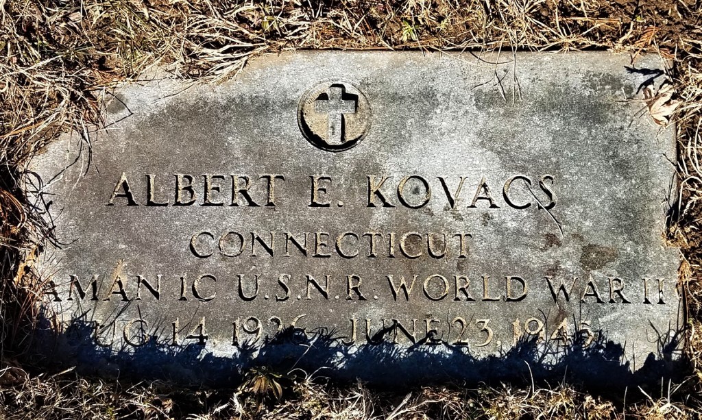 Seaman 1C Kovacs is buried at St. Mary’s Cemetery, 15 Broad Street, Norwalk, Connecticut; Section B.