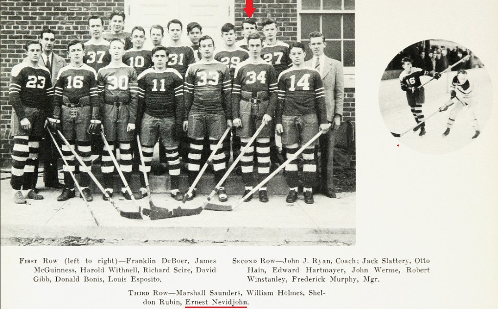 Technical Sergeant Ernest Nevidjon, 21, son of Mrs. Bessie Hegedus of 65 Lexington Avenue, was recently killed in action in the South Pacific, news of his death having been received by his mother in a Navy Department telegram. Tech Sgt Nevidjon had previously been reported as missing in action, the notification stating that the plane in which he was a turret gunner was long overdue. The sergeant enlisted in the Marines in December 1942 from Bridgeton Academy. He was a Norwalk High School graduate in 1942 and was class president. He participated in high school sports and was captain of the hockey team. He was the fiancé of Miss Alice DiDomenica, daughter of Mr. and Mrs. DiDomenica of Spring Hill Road, their engagement having been announced in December 1943.