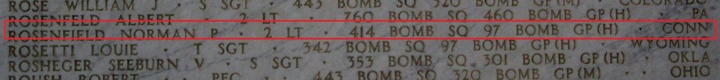 One thought on “SECOND LIEUTENANT NORMAN PHILIP ROSENFIELD; U.S. ARMY AIR FORCE”