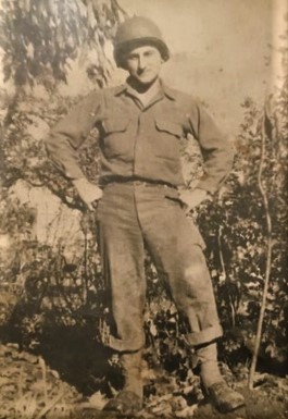 From David Russo: “I would like to give you a short history of my father in the Army. His father took him to the South Norwalk train station to be in the Army. He was finally sent to England, where he was preparing for the Normandy landings. He once told me the night before the landings, they had a fantastic meal, but it felt like “the last supper”. He hit the beaches at Normandy. While on the beach, he saw a man drop here then there from enemy fire. He was assigned to the 4.2-inch mortar while in the chemical ordinance unit. Chemical ordinance basically means using white phosphorus. One time, he said he felt sorry for the people receiving this chemical because of what it did to the human body. Later on, he was sent to Belgium during the Battle of the Bulge. While manning a 30 caliber machine gun on the second floor of a building, he heard the Germans coming in on the first floor. The Germans would fire a burst of machine fire just to let them know they were there.  The first thing my father did was remove the chemical warfare insignia from his uniform and hide them. The Germans would know he would be the one using white phosphorus, and they hated it. The Germans who took him were SS from the Hermann Goering Division. He remembered the name on the German’s armband.  … While he was in prison, he was only given one potato a day to eat. He said a German doctor treated him for an injury. The doctor only had white crepe paper to use, and no bandages were available. When he was liberated, he only weighed 96 pounds”. END