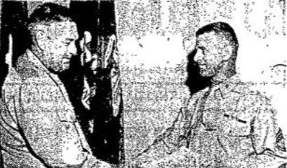 Retiring after 20 years of Marine Corps service is Sgt. Joseph J. DeLuca (left, above) receiving congratulations from Brigadier General Austin R. Brunelli, commander of Marine Corps Base, Camp Lejeune, North Carolina. Sergeant DeLuca is a former “paramarine” and holder of the Purple Heart Medal. During World War II, he saw action in the Solomon Islands, Vella-LaVella, Bouganville, and Okinawa. In Korea, he participated in the Inchon Landing. The sergeant, his wife, and their four children will make their permanent home in Jacksonville, Florida. Sergeant DeLuca is the son of Mrs. Nancy DeLuca of 12 1/2 Hamilton Avenue and the late Salvatore DeLuca. He attended local schools and left at the age of 17 to join the Marines.