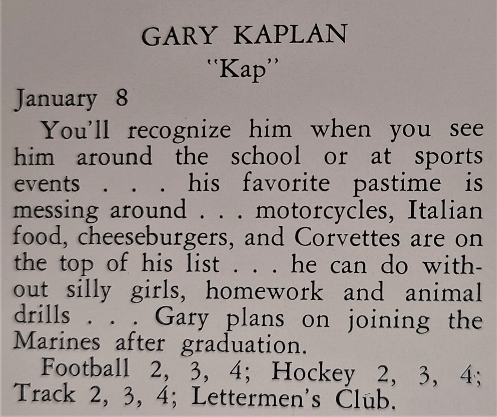 A Norwalk Marine is receiving care aboard a Naval hospital ship after suffering severe shrapnel wounds during the battle for Hill 861 in Vietnam on April 26. Marine PFC Gary Kaplan, son of Mr. and Mrs. Daniel Kaplan of 7 Clara Drive, has written his parents that out of his entire platoon, there were only three survivors after the battle. Kaplan himself received fragmentation wounds in both knees, both shoulders, and one arm. He was evacuated from the hill by helicopter and is now aboard the USS Sanctuary in Subic Bay, off the Philippine Islands. After receiving official notification from the Department of the Navy that their son had “suffered fragmentation wounds on April 26,” Kaplan’s parents received no further information until May 6 when they received a letter from their son written aboard the hospital ship. Kaplan, a 1966 graduate of Norwalk High School, told of being one of the survivors of a battle that took the lives of all but two other men in his platoon. After being wounded, he and one other Marine attempted to help some of the wounded. Finally, when his wounds made him unable to move about, Kaplan was assisted to a clearing by one of the other Marines and evacuated by helicopter to Phu Bai. Later, he was transferred to the hospital ship. At Norwalk High School, Kaplan played football and participated in track events. He enlisted in the Marines on Good Friday of last year and was inducted in September. He had been in Vietnam since February 14.