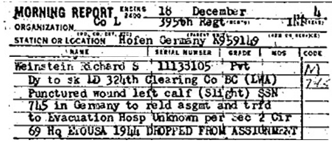 Morning Report from December 18, 1944 – wounded. Photo provided by Robbert Morsink, 99th Infantry Division Collections & Stories, The Netherlands