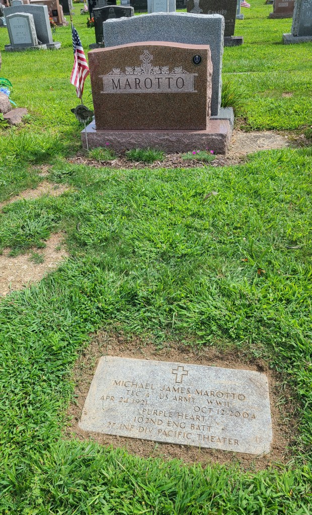 was a retired steamfitter and plumber, a trade in which he worked for 47 years through the Plumbers and Pipefitters Local 777. A combat veteran of the Second World War, he enlisted in the Army in Hawaii, where he served for three years with the 102nd Engineer Battalion after working as a steamfitter on the ships in Pearl Harbor in 1942. His combat service in the Pacific Theater included Makin Island, Saipan, and Okinawa, and he was with the occupation forces in Japan in 1945. He was awarded the Purple Heart, Bronze Star, Asiatic Pacific Theater Campaign Ribbon, and Victory Medal, all with the 27th Infantry Division. He was a life member of the Military Order of the Purple Heart, the Veterans of Foreign Wars, and the American Legion. He is survived by his wife, Connie; his son Michael J. Marotto, and his wife, Carole of Norwalk; his daughter Elaine Sansone, and her husband, David of Stamford; his daughter Kathy DiScala, and her husband, David of Norwalk, and eight grandchildren: David, Marie, Rachel, Amy, Stephen, Matthew, Laura, and Jamie. A Mass of Christian Burial will be celebrated on Saturday at 10:00 a.m. at Saint Joseph’s Church, South Main Street, Norwalk. Interment will be in Saint John’s Cemetery, Norwalk. The family will receive friends at the Magner Funeral Home, Mott Avenue, Norwalk, on Friday from 4:00 to 8:00 p.m. Contributions may be made to Saint Joseph’s Church, 85 South Main Street Norwalk. CT 06854.