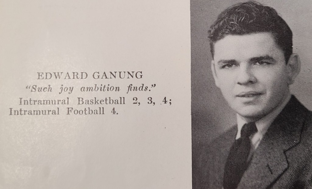 FAMILY: Born to Charles Albert (1899-1944) and Esther M. Mason Ganung (1897-1973). Three sisters, Catherine V. Ganung Basone (1922-2001), Elizabeth Ganung Kish (1923-2016), and Esther Ganung Dudas (1928-1974).