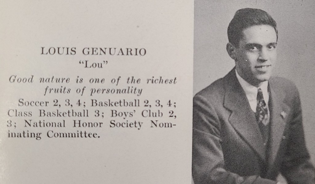 Born January 1, 1926, in a home on Fifth Street, he was the son of Gemma DiDomenica, who celebrated her 100th birthday last year at Mediplex of Westport and the late Arthur J. Genuario. The parents owned and operated a dress and bathing suit manufacturing company off Water Street for three decades. The editors of the NHS Class of 1944 yearbook noted next to Mr. Genuario’s picture: “Good nature is one of the richest fruits of personality.” Noted was that in addition to playing varsity soccer and baseball, he was a member of the National Honor Society Nominating Committee. Surviving in addition to his wife and mother, are two sons, Arthur Genuario and Louis Genuario, Jr., both of Alexandria, Virginia; four daughters, Donna G. Hart and Marina G. Nagler, both of Fredericksburg, Virginia; Christina G. Aiello of Santa Fe, New Mexico; and Debra G. Whitt of Richmond, Virginia; a sister, Maria Genuario Piro Sikes of Norwalk; 14 grandchildren, and six great-grandchildren. A younger brother, Vincent L. Genuario, a cofounder of Genuario’s Floor Covering Center at 106 Main Street, died in 1993.