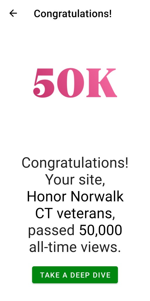It took roughly four years to reach this milestone, but the website hit a milestone today—50,000 all-time views. I’m grateful for everyone who has stopped by to read about some real American heroes.