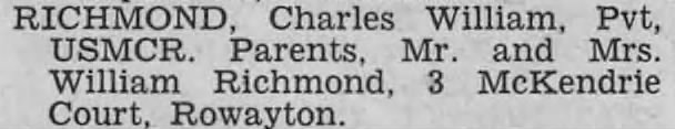 FAMILY: Born to William G. (1896-1956) and Georgiana Buckley Richmond (1885-). One sister, Evelyn M. Richmond Dolan (1924-2016).