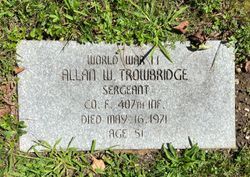 “By direction of the President, the Bronze Star Medal is awarded to Sgt. Allan W. Trowbridge of the 407th Infantry for heroic achievement in Germany on December 2, 1944, in connection with military operations against the enemy in the vicinity of a strongly defended enemy town. Sgt. Trowbridge, although wounded in the early stages of the attack, continued in action against the enemy with his organization in the accomplishment of its objective. After reaching the objective, he assumed responsibility for caring for and administering aid to his wounded companions until they could be safely evacuated. He further exposed himself to intense personal danger in the midst of bursting enemy artillery and mortar shells in locating and assisting in bringing in wounded men from the battlefield. Only after assuring himself that he had done all he could for other wounded did he permit his own wound to be treated. The courage, fortitude, and skill displayed by Sgt. Trowbridge with utter disregard for his own welfare and safety reflects great credit upon himself and the military service.