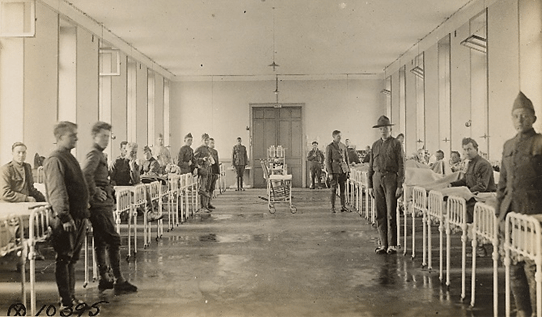 SERVICE DATES: Called into active service on July 20, 1917. Served on Ellis Island, NY, until August 7, 1917. Then Base Hospital #8, Savenay, France, until November 30, 1917. Then Base Hospital #101, St. Nazaire, France, until January 28, 1918. Then Base Hospital #8 again until March 11, 1919. Discharged on April 18, 1919.
