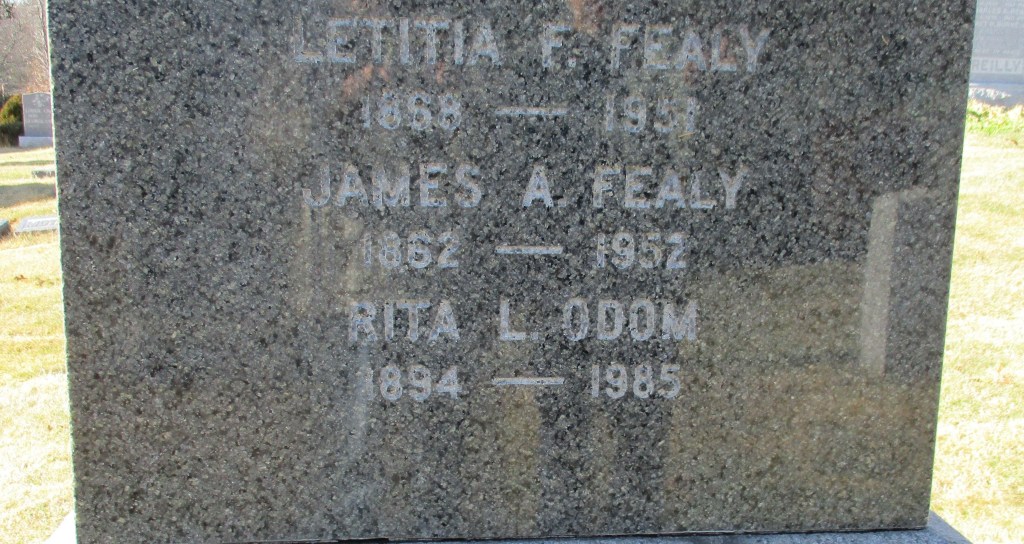 FAMILY: Born to James A. [1862-1952] and Letitia E. Rorke Fealy [1868-1951]. One brother, Charles A. [1897-1909]. One sister, Ella M. Fealy Sullivan [1892-1984].