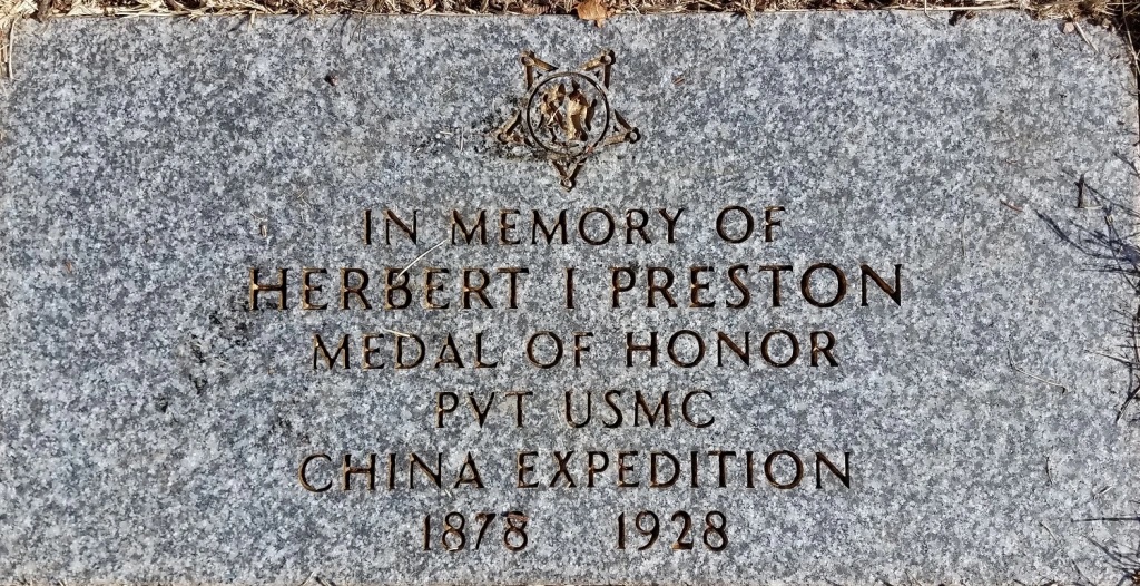 CIRCUMSTANCES: During the Boxer Rebellion in China (November 2, 1899 – September 7, 1901), 59 American servicemen received the Medal of Honor for their actions. Four were awarded to Army personnel, 22 to Navy sailors, and the remaining 33 went to Marines. Herbert I. Preston was one of those Marines.